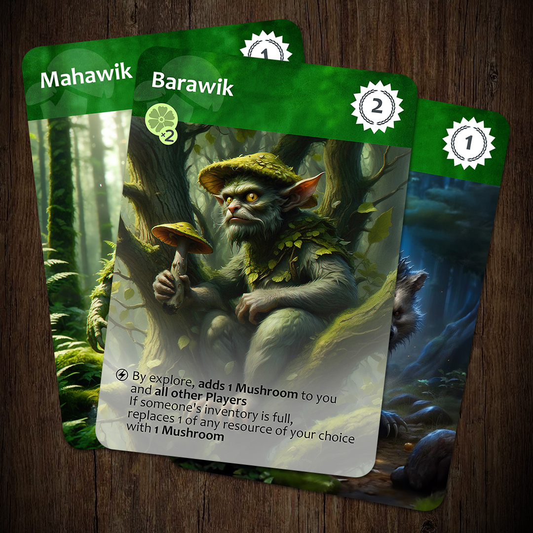 Collect resources, play creature cards, actions, and items, and earn victory points!