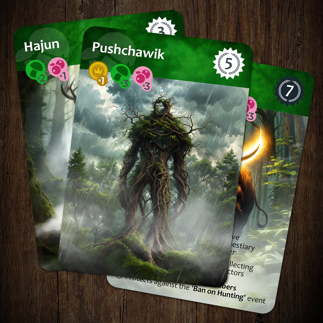 Euro-style board game of resource management and seasonal strategy, where players study the mythical creatures of Belarus.
